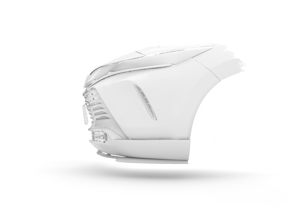 鍛造カーボンならではの艶やかな繊維が、SUVらしい力強さの中に、繊細な陰影を描き出す。